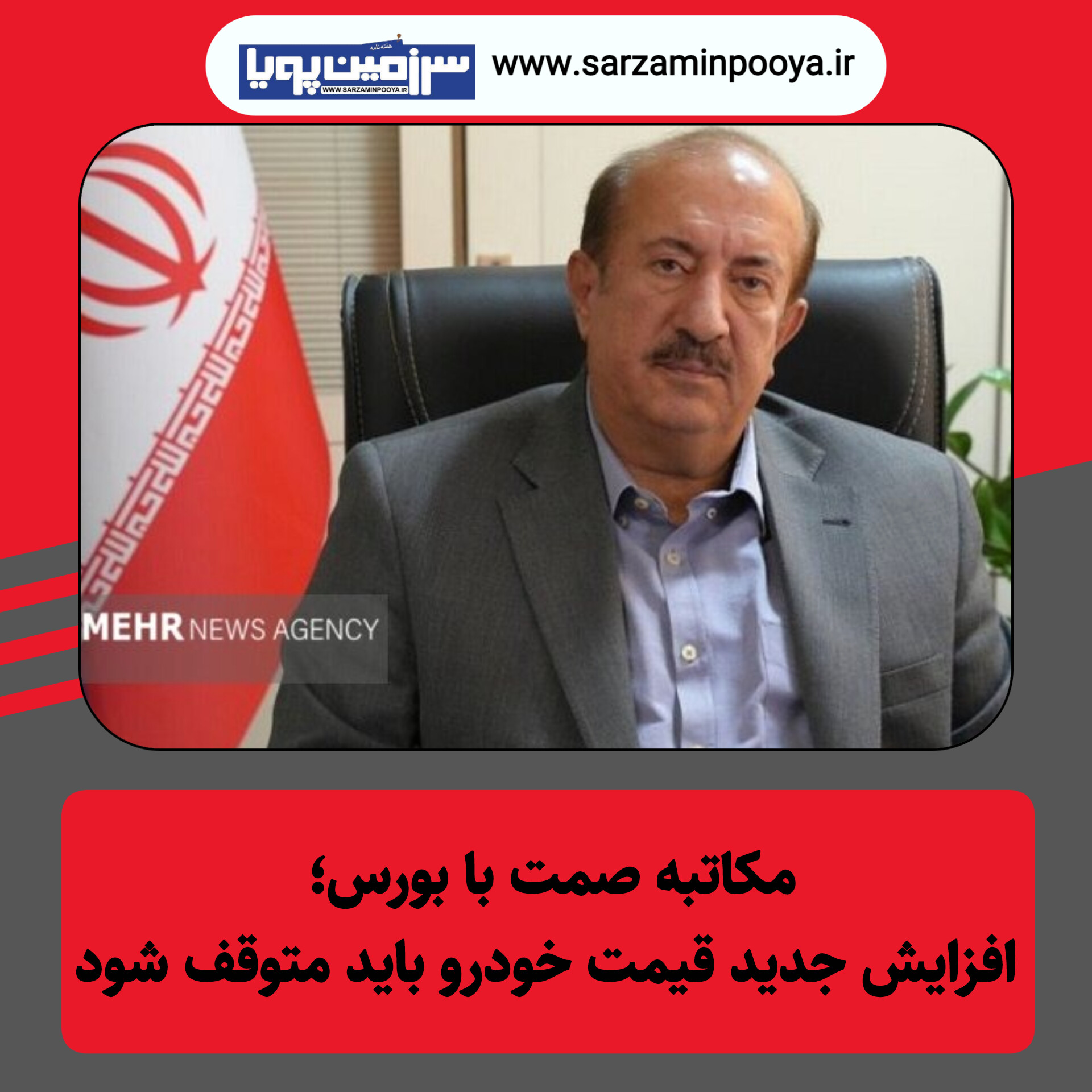 سخنگوی وزارت صنعت، معدن و تجارت گفت: برای این خودروساز، سازمان حمایت مصرفکنندگان و تولیدکنندگان یک نامه به بورس ارسال کرده است که حتماً باید افزایش قیمتها متوقف شود و مورد بررسی کامل قرار گیرد.
