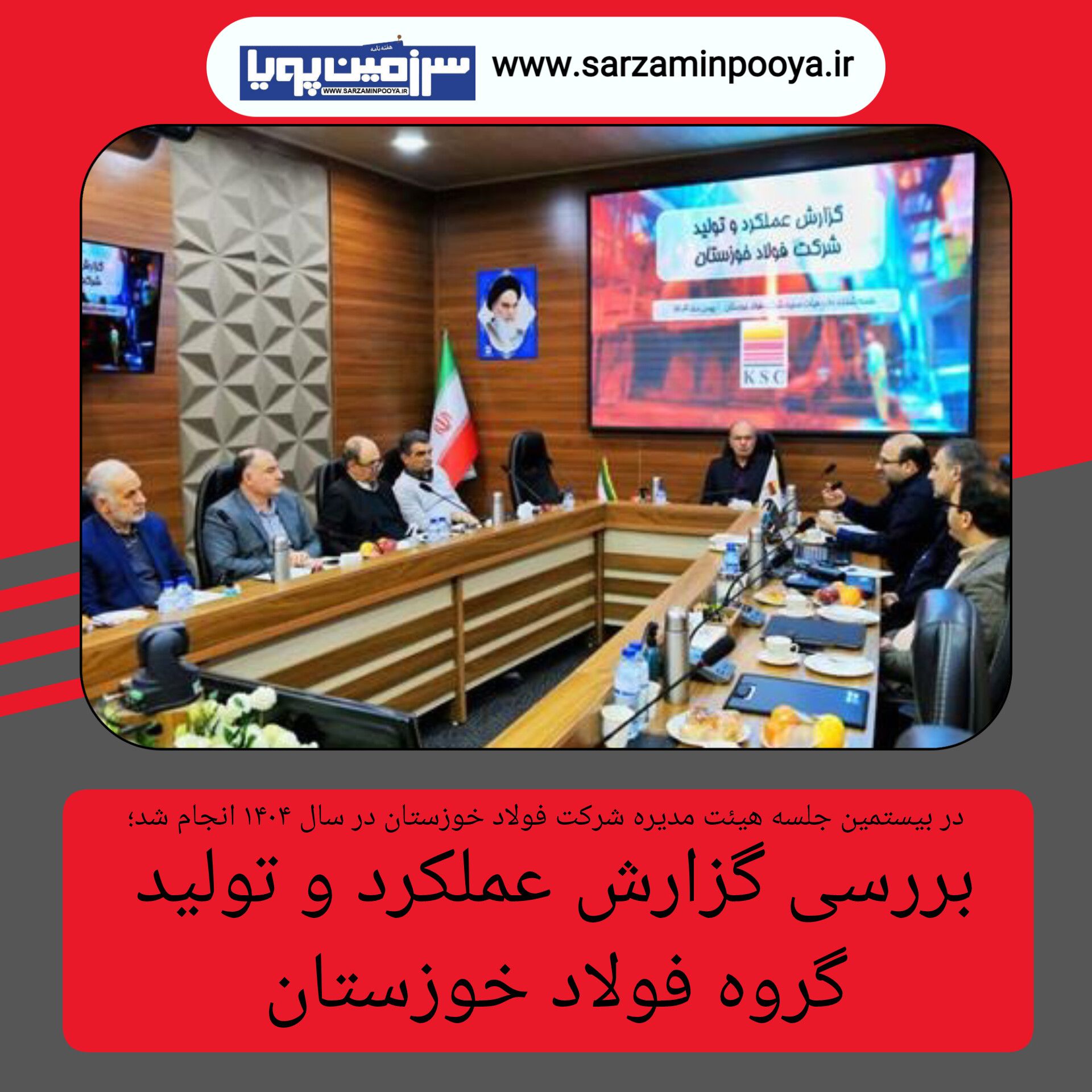در بیستمین جلسه هیئت مدیره شرکت فولاد خوزستان در سال ۱۴۰۴ انجام شد؛بررسی گزارش عملکرد و تولید گروه فولاد خوزستان به گزارش پایگاه خبری سرزمین