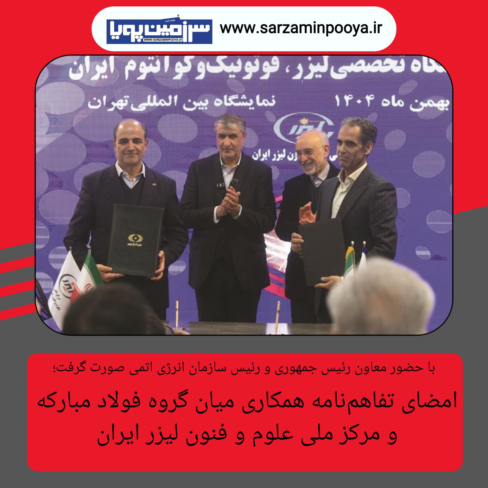 با حضور معاون رئیسجمهوری و رئیس سازمان انرژی اتمی صورت گرفت؛امضای تفاهمنامه همكاری میان گروه فولاد مباركه و مركز ملی علوم و فنون لیزر ایرانآیین