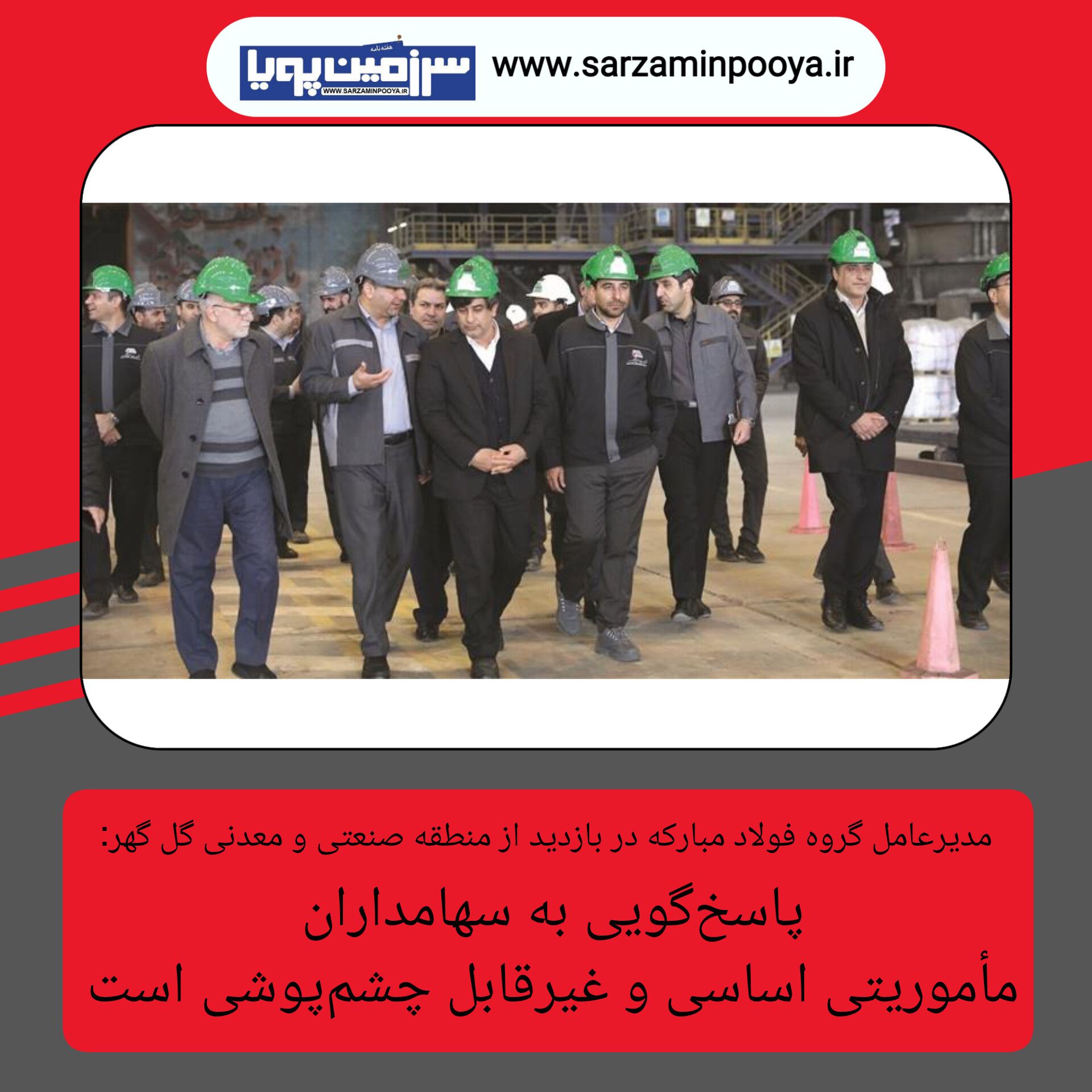 مدیرعامل گروه فولاد مبارکه، در بازدید از منطقه صنعتی و معدنی گلگهر:پاسخگویی به سهامداران مأموریتی اساسی و غیرقابلچشمپوشی استمدیرعامل گروه فولاد مبارکه با تأکید بر